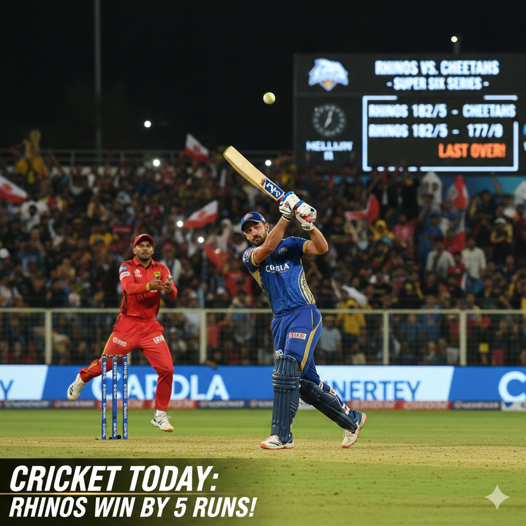 In a nail-biting encounter yesterday, the Rhinos edged out the Cheetahs by a mere 5 runs in the Super Six Series. The match went down to the final over, with a brilliant spell of death bowling from the Rhinos’ captain securing their victory. Spectators were on the edge of their seats as boundaries were exchanged in a thrilling chase.