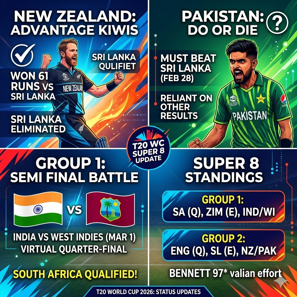 Since Pakistan’s narrow two-wicket loss to England, the T20 World Cup Super 8 stage has moved at a rapid pace. Here are the two most critical updates you need to know regarding the tournament’s progress and the semi-final race: